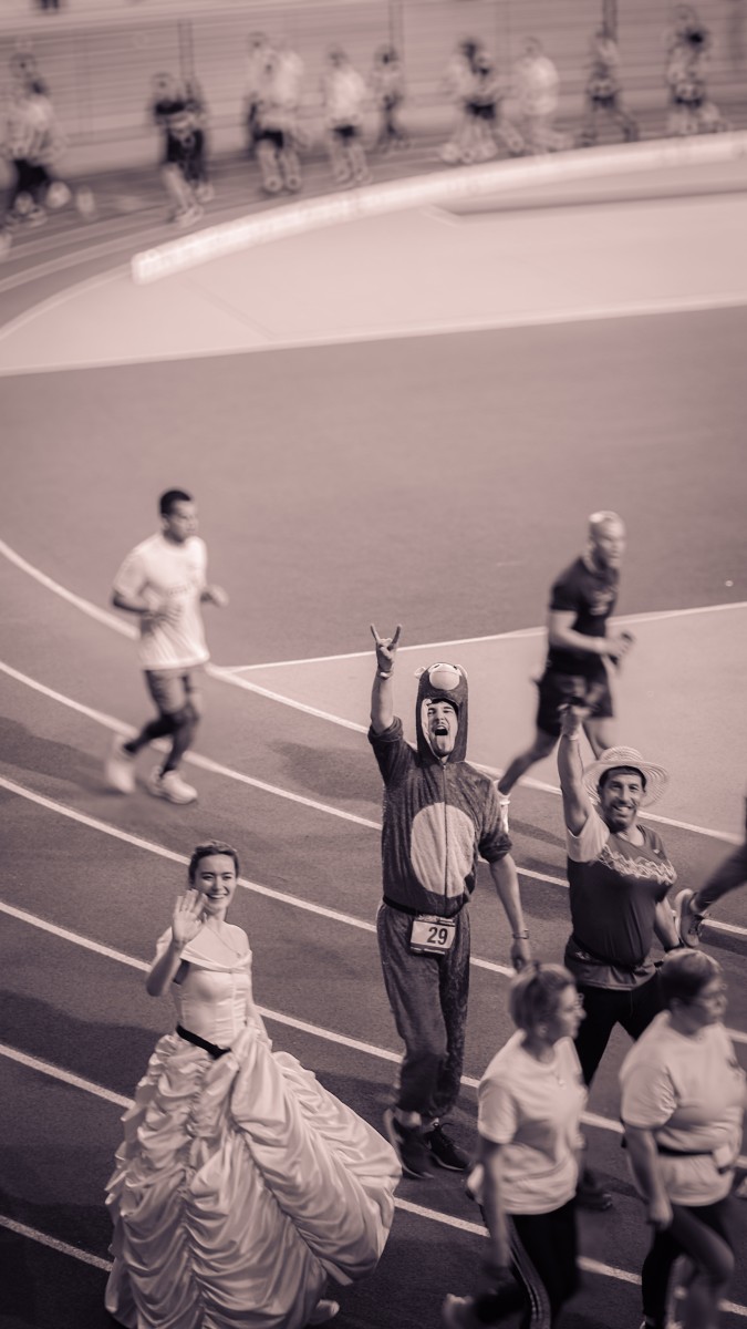 Cheers rang out from every section of the bleachers, applause motivated their every step and waves and fist bumps greeted them at every turn. They were met with numerous photo requests and delightfully playful interactions from other relayers on the track. From gallant bows, to in-character interactions, everyone chimed in to make it an unforgettable experience.